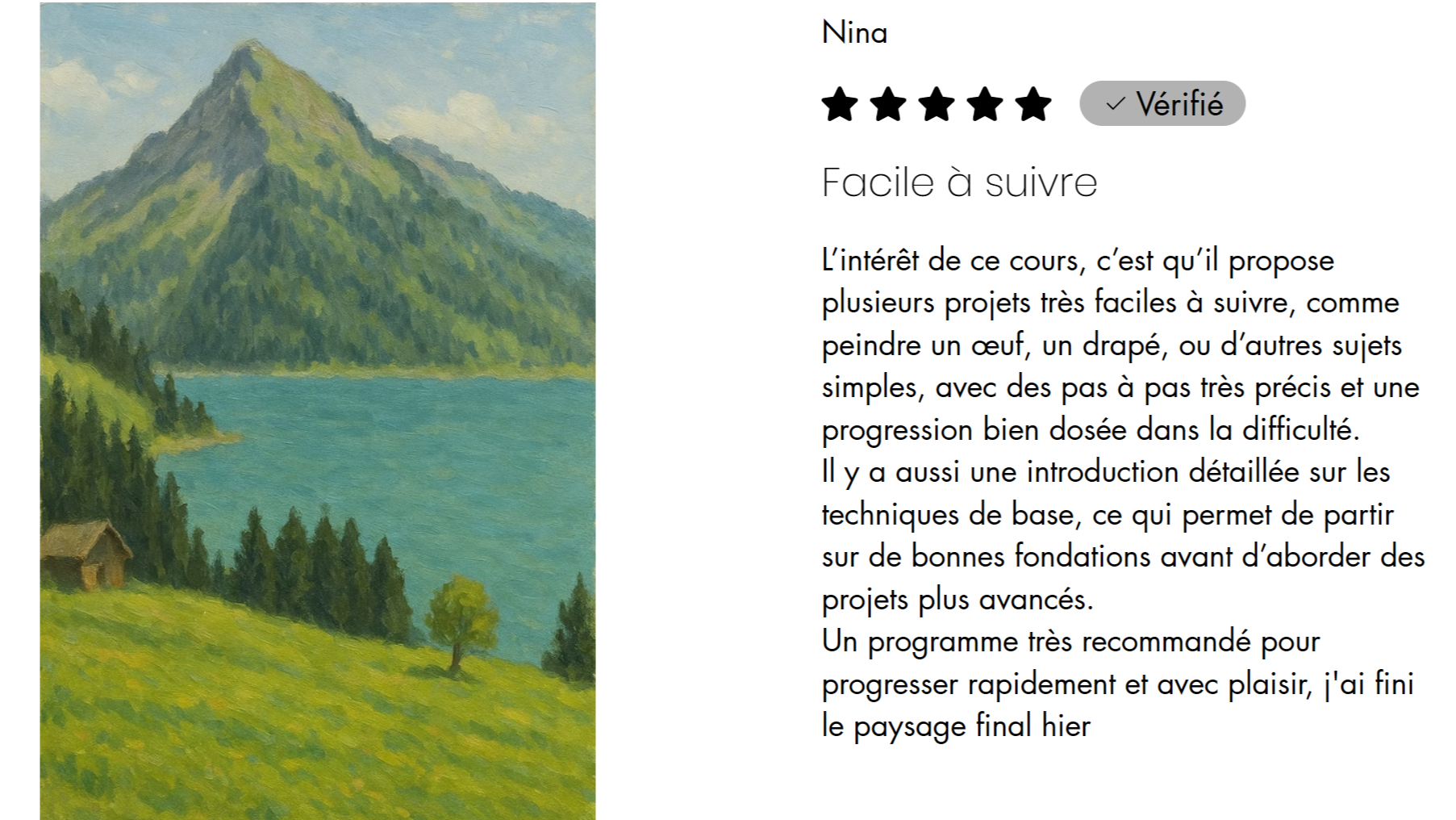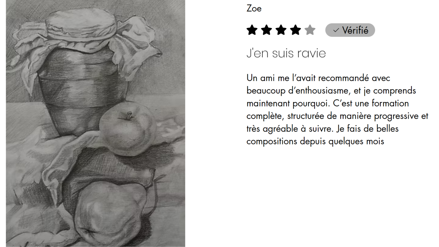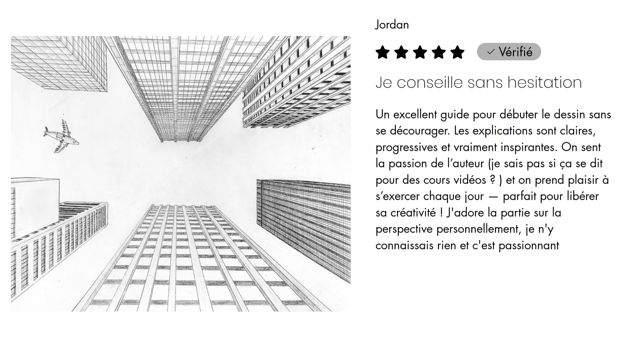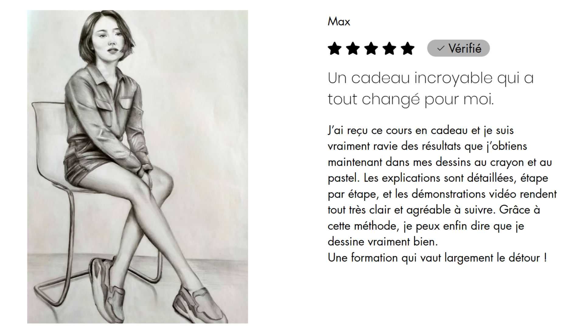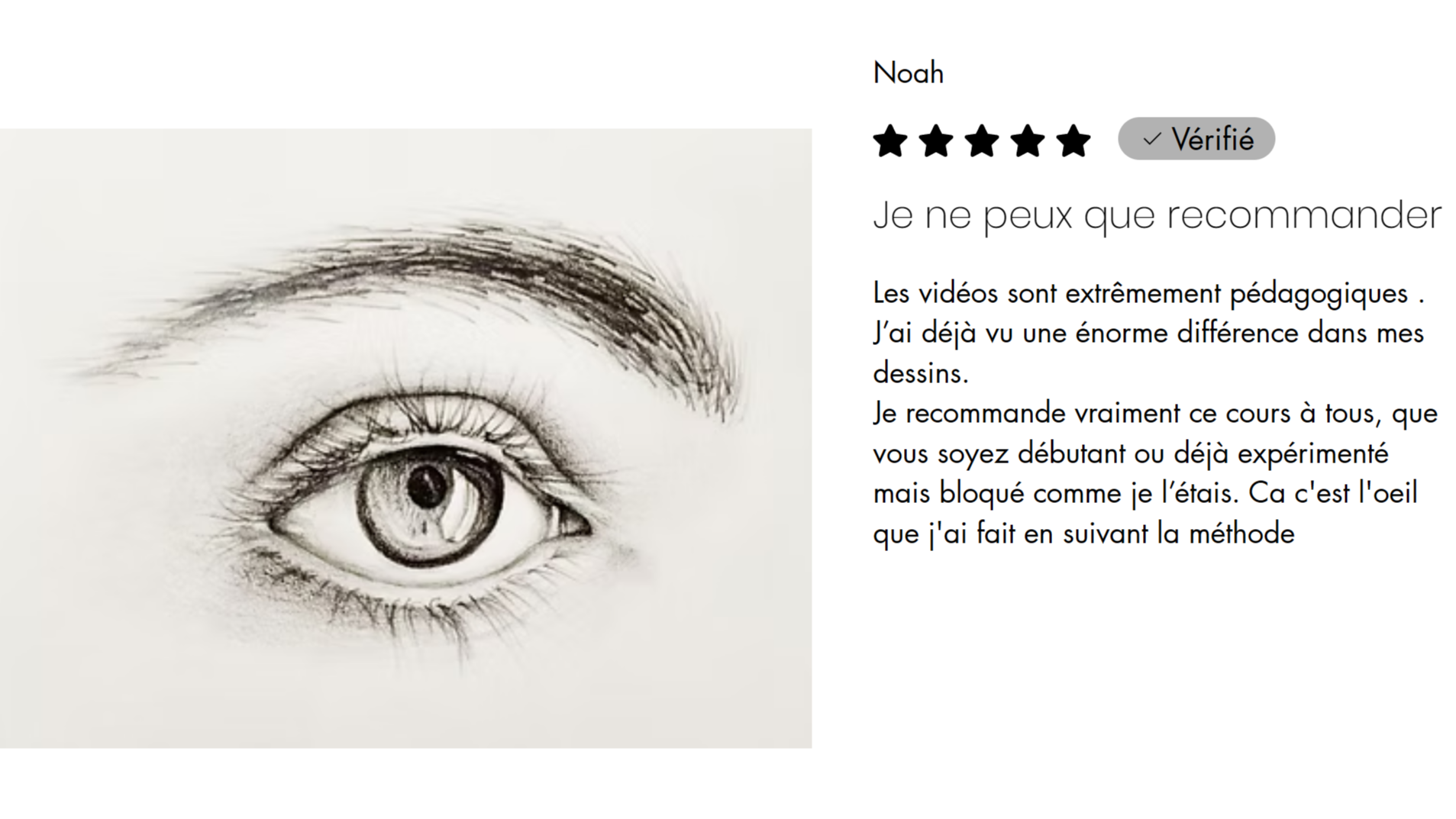 "Je pensais que le dessin était réservé à ceux qui avaient un don. Avec les cours de Tristan, j’ai compris que c’est surtout une question de méthode. Les explications sont claires, les exercices progressifs, et les résultats arrivent vite. Aujourd’hui, je prends enfin plaisir à dessiner."
