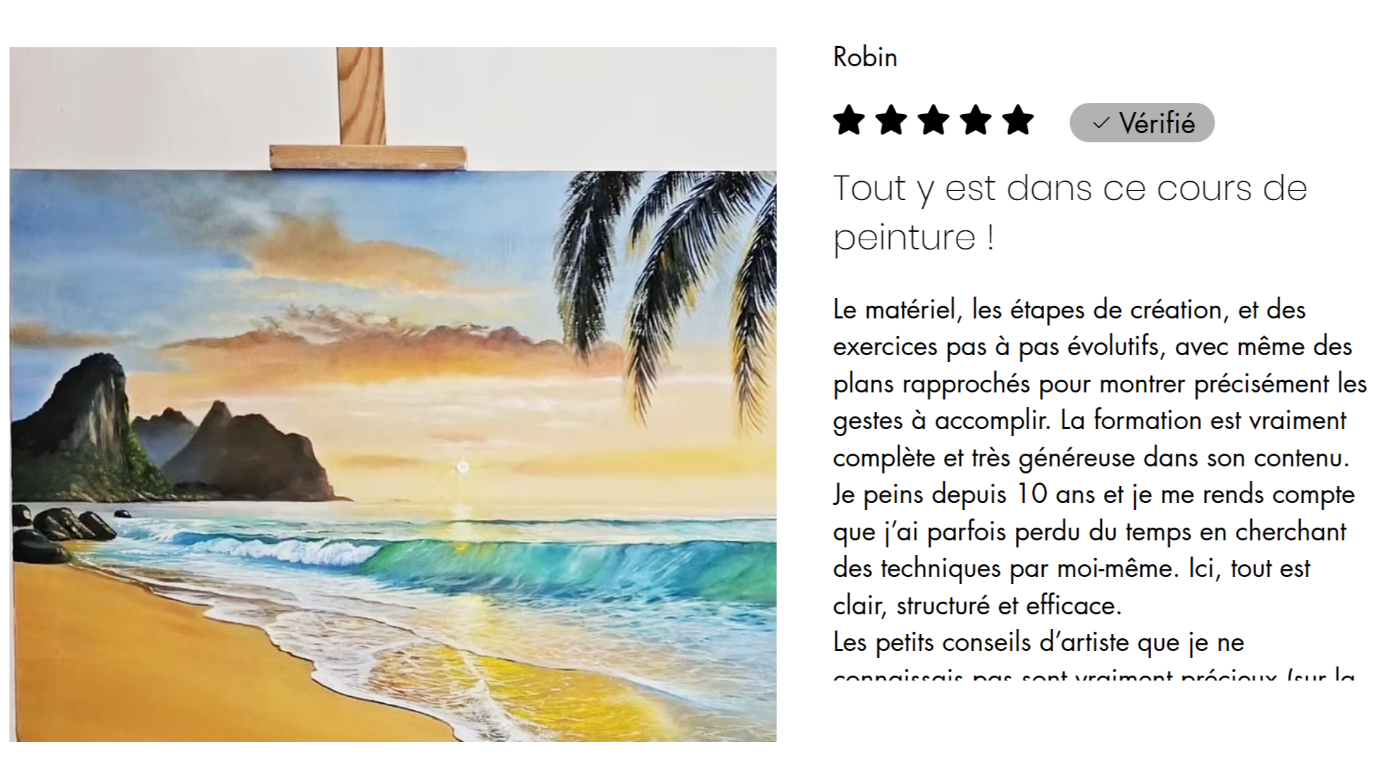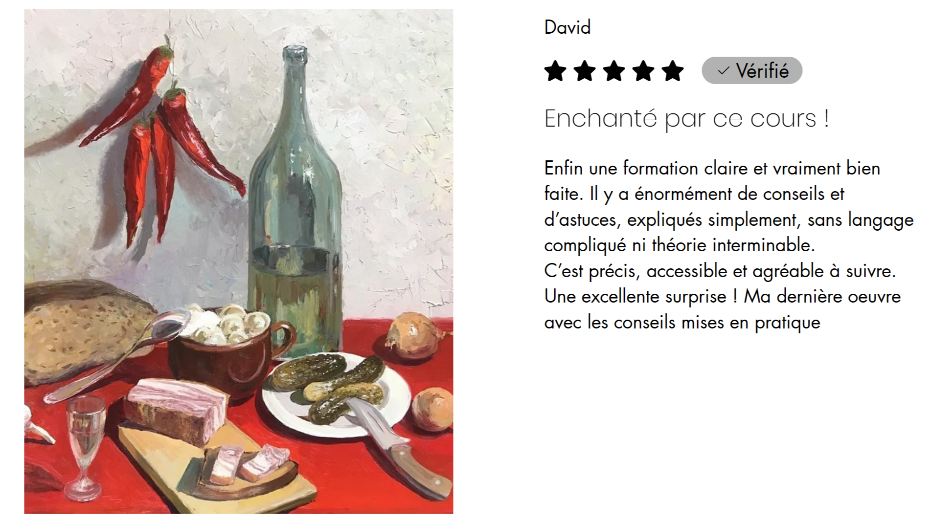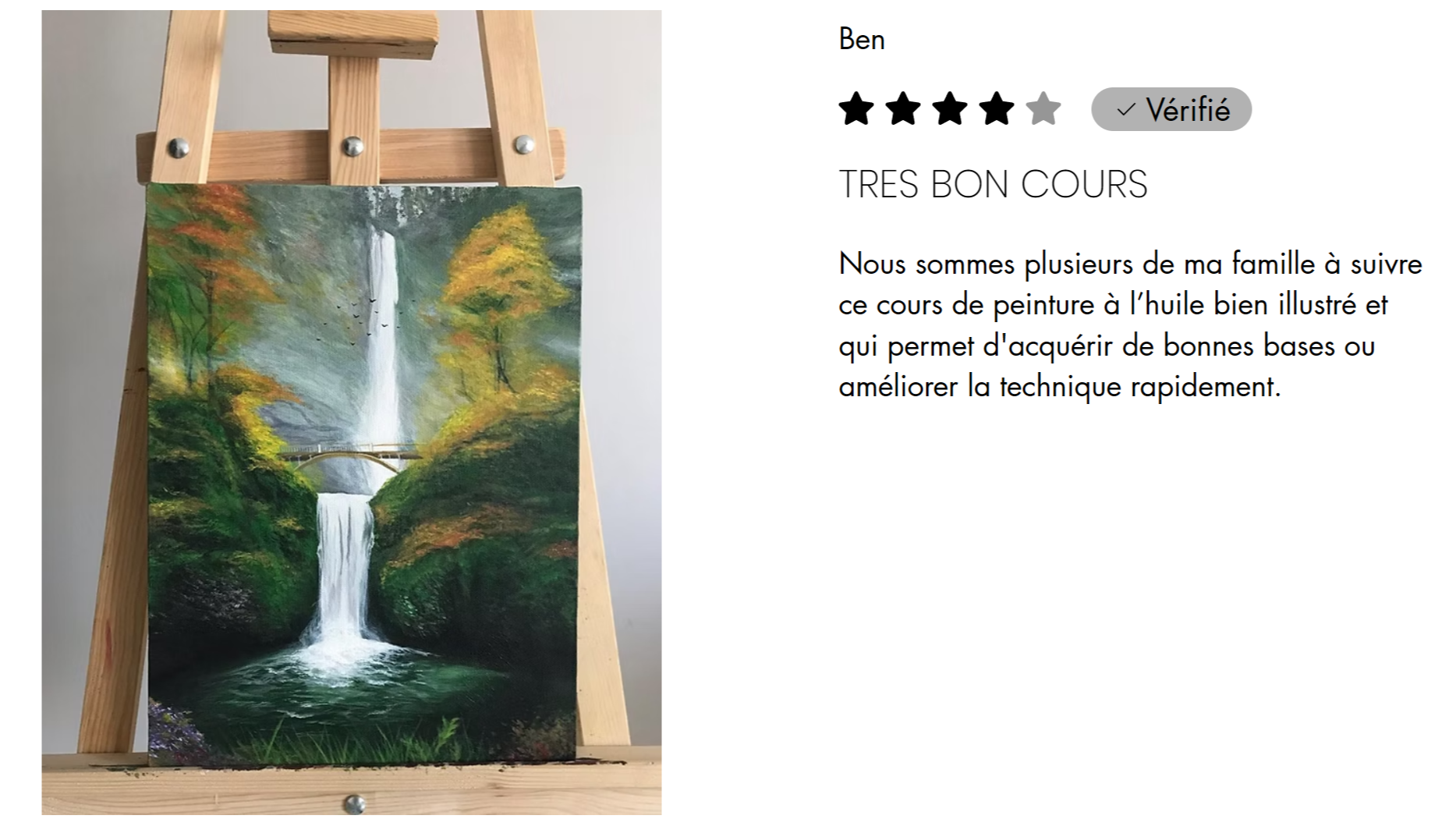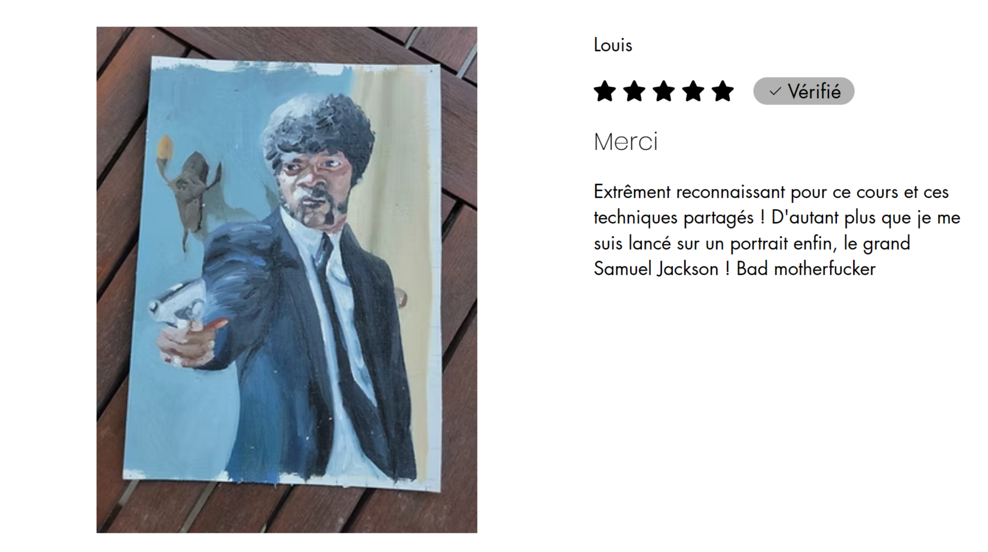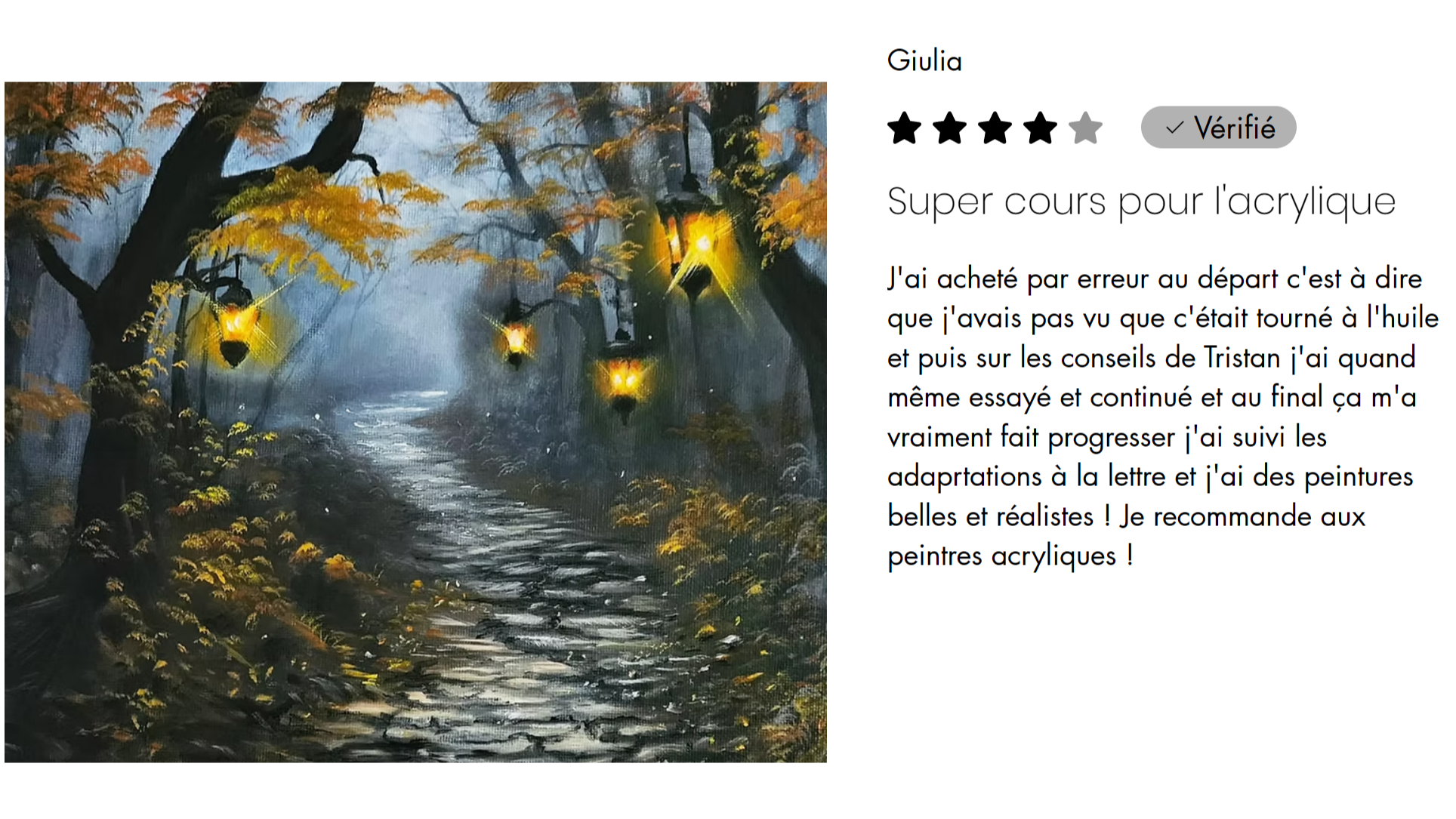 "Aux Beaux-Arts, tout me semblait trop théorique. On parlait beaucoup mais on peignait peu. Avec Tristan, c’est l’inverse : chaque démonstration est claire et va droit au but. On comprend immédiatement comment peindre, étape par étape."