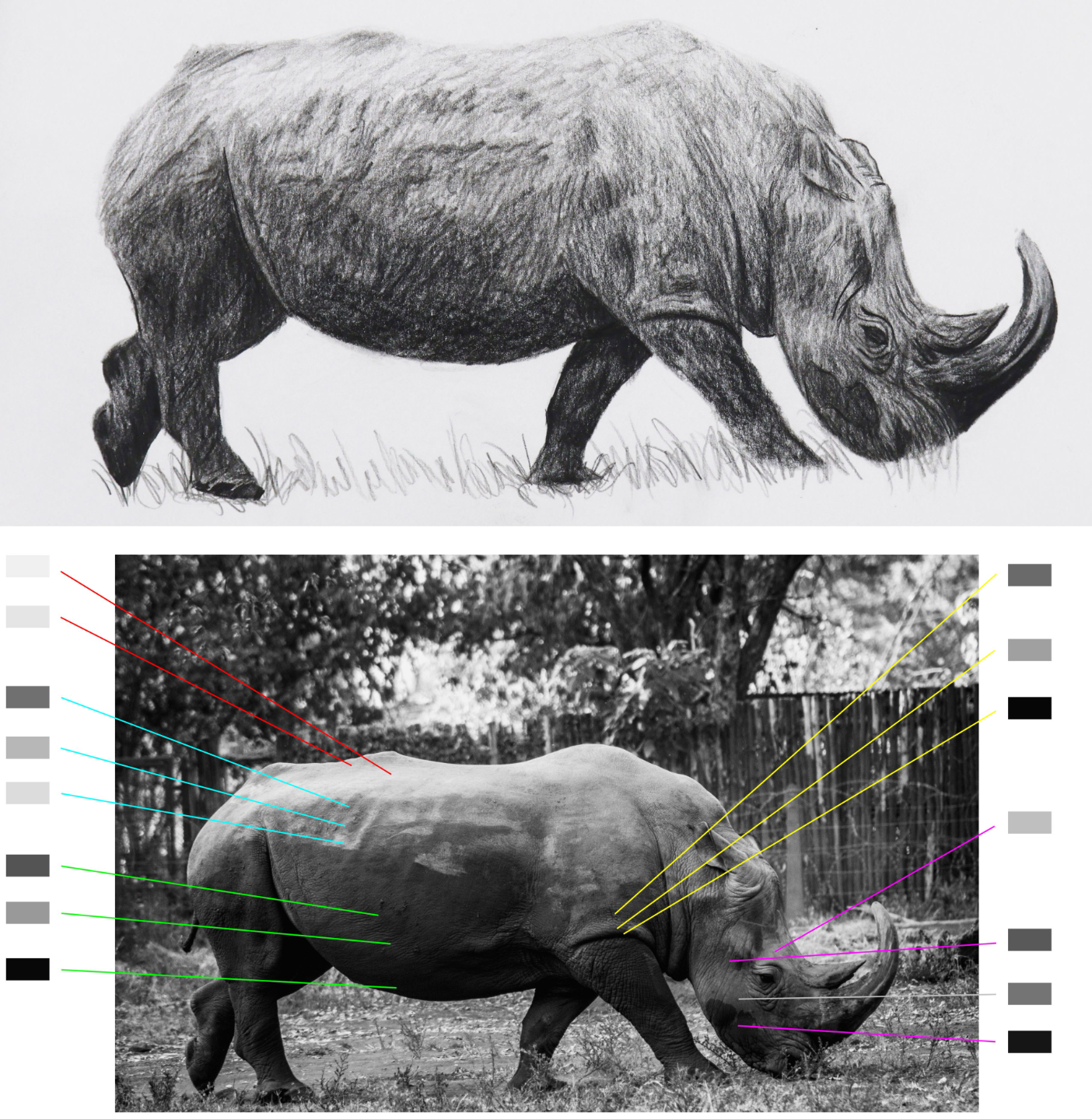Maîtriser l’ombrage et les volumes — étude du rhinocéros
